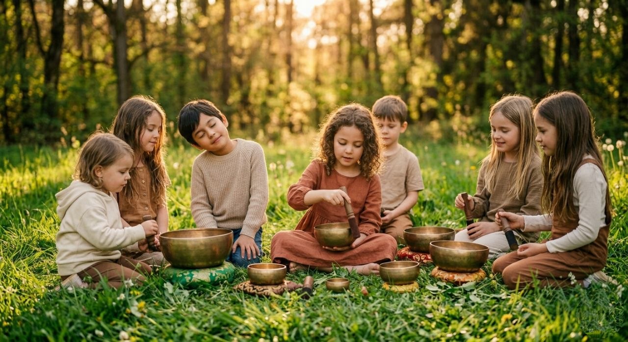 Kinder ahmen den Klang der Schale nach, summen, atmen bewusst — spielerisch und mit Freude. Diese aktive Beteiligung spricht direkt den Parasympathikus an und stärkt Resilienz und Selbstwirksamkeit von innen heraus.
